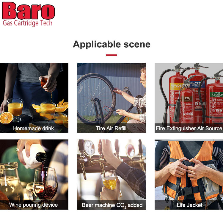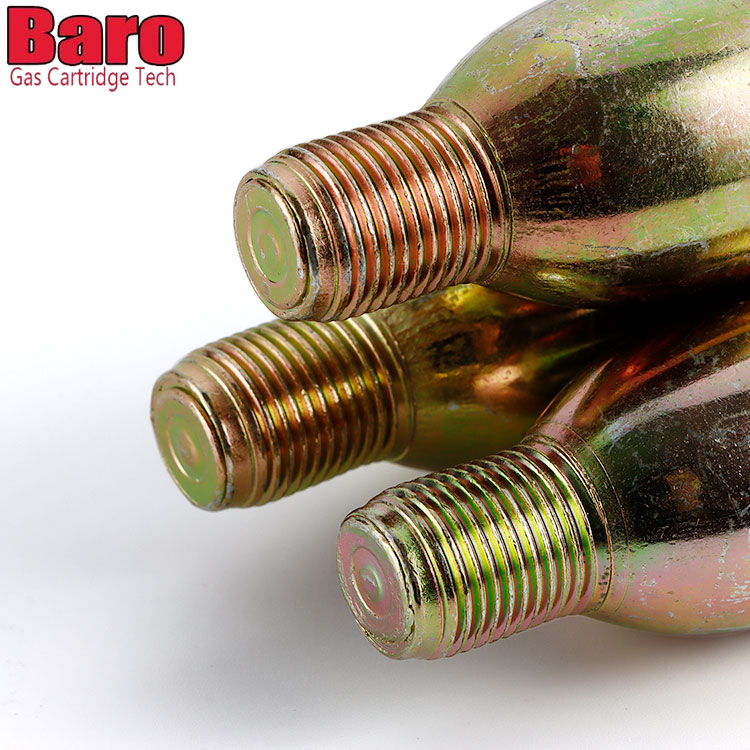 ຄຸນນະພາບພຣີມຽມ 33g CO2 cartridges ແມ່ນສໍາລັບລຸ້ນຄູ່ມືຂອງເສື້ອຊູຊີບອັດລົມ (ລວມທັງເສື້ອຊູຊີບ, ຖົງສາຍແອວ, ຫຼືອຸປະກອນ flotation ສ່ວນຕົວ (PFD). ກະບອກສູບ CO2 45g ສໍາລັບເສື້ອຊູຊີບແບບອັດລົມແມ່ນເຂົ້າກັນໄດ້ກັບເສື້ອຊູຊີບ ແລະໃຊ້ກະທູ້ 1/2 ນິ້ວ. ໄສ້ກອກ CO2.